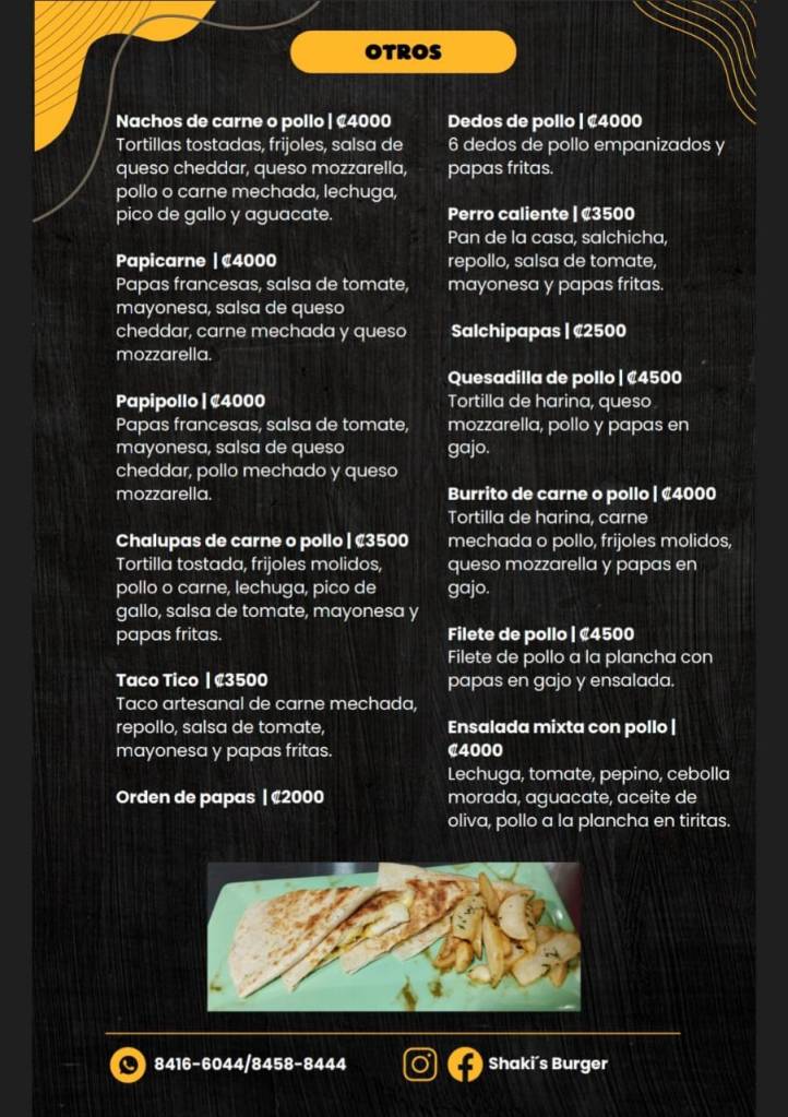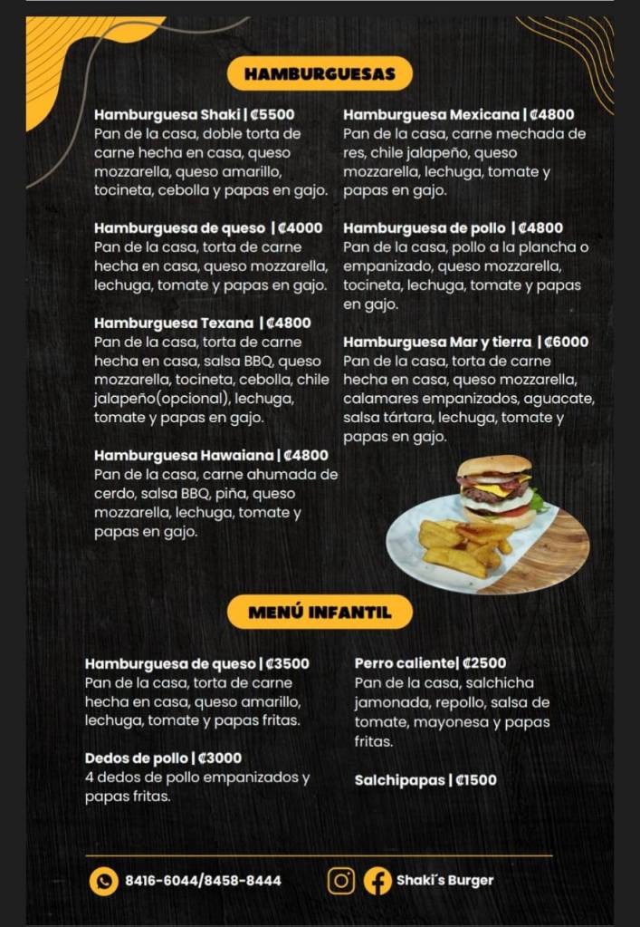 We are a family-run food truck located in front of the church in Corozalito. Our menu offers a unique fast food experience with an artisanal touch, featuring wood-fired cooking, homemade bread, and handcrafted burger patties. We also have a variety of dishes to suit different tastes, including vegan and vegetarian options.